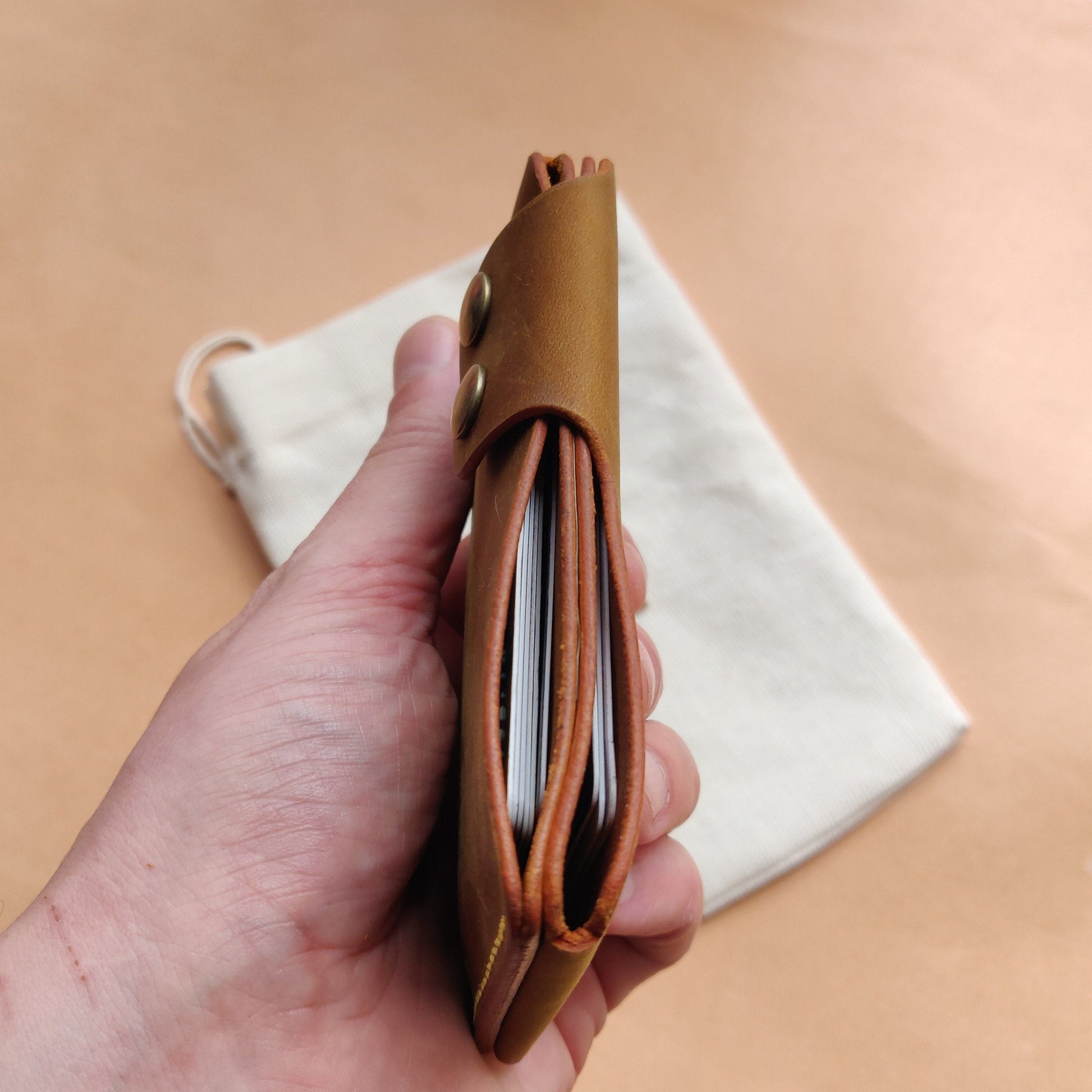 Leather Card Holder, Distressed Leather Pocket Mini Wallet, Minimalist Card Holder Case