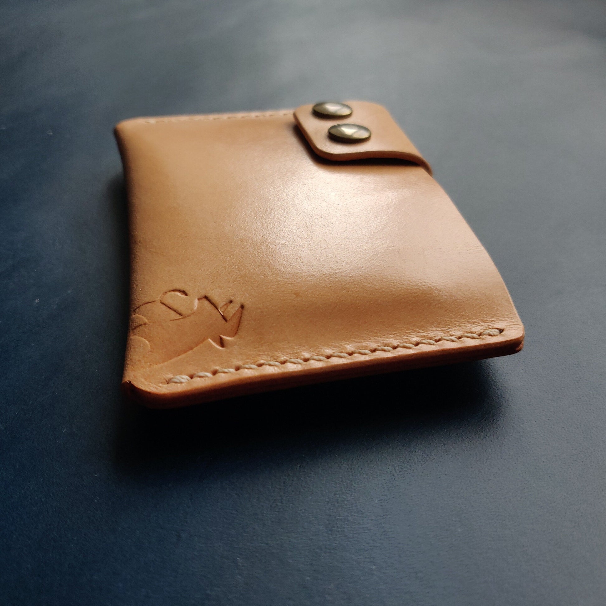 The wallet is handcrafted and hand-stitched with waxed thread.