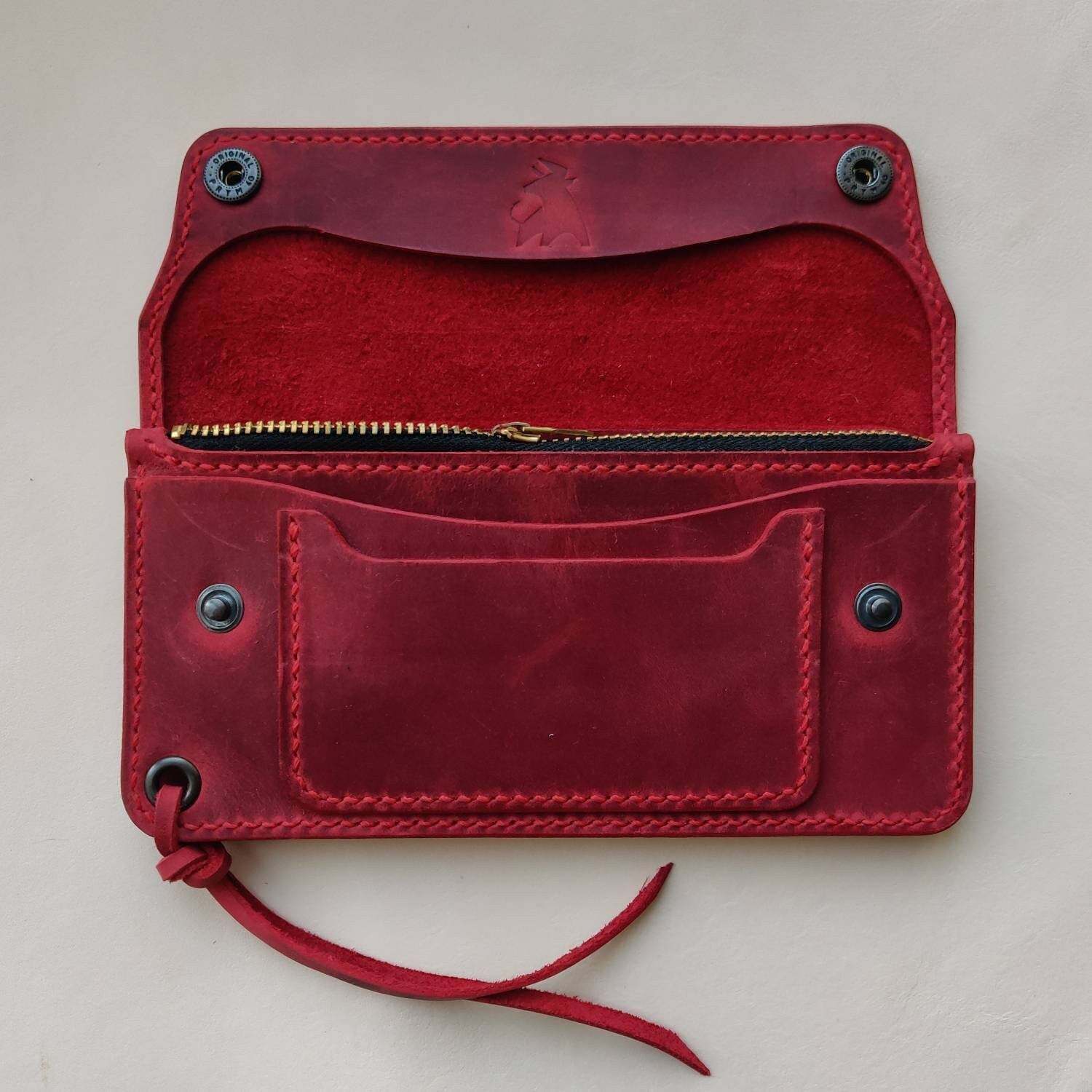 Long Trucker Wallet With A Ring For Chain Or Lanyard , Handmade Wallet For Rider, Biker or Trucker