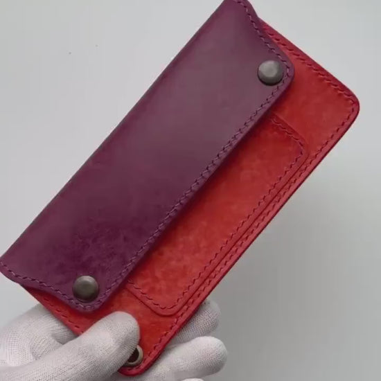 Long Trucker Wallet With A Ring For Chain Or Lanyard , Handmade Wallet For Rider, Biker or Trucker
