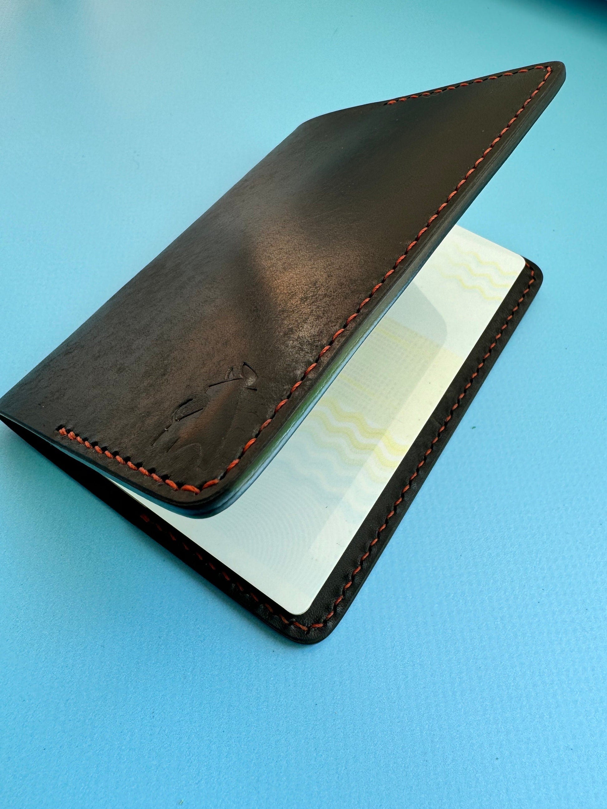The product is made exclusively by hand. I carve every piece by hand, not using a press. Each passport cover is hand-finished with beeswax and hand-stitched with waxed thread.