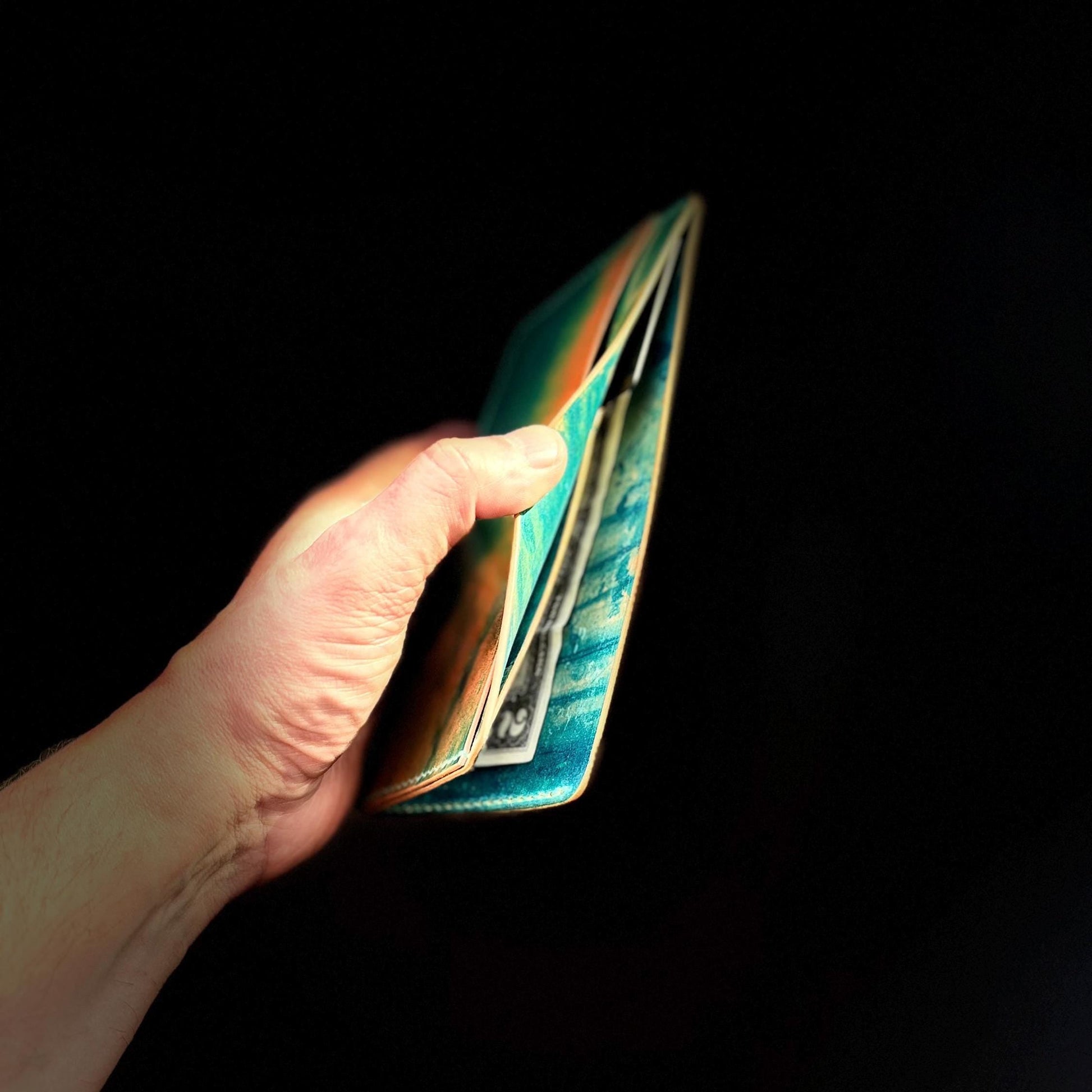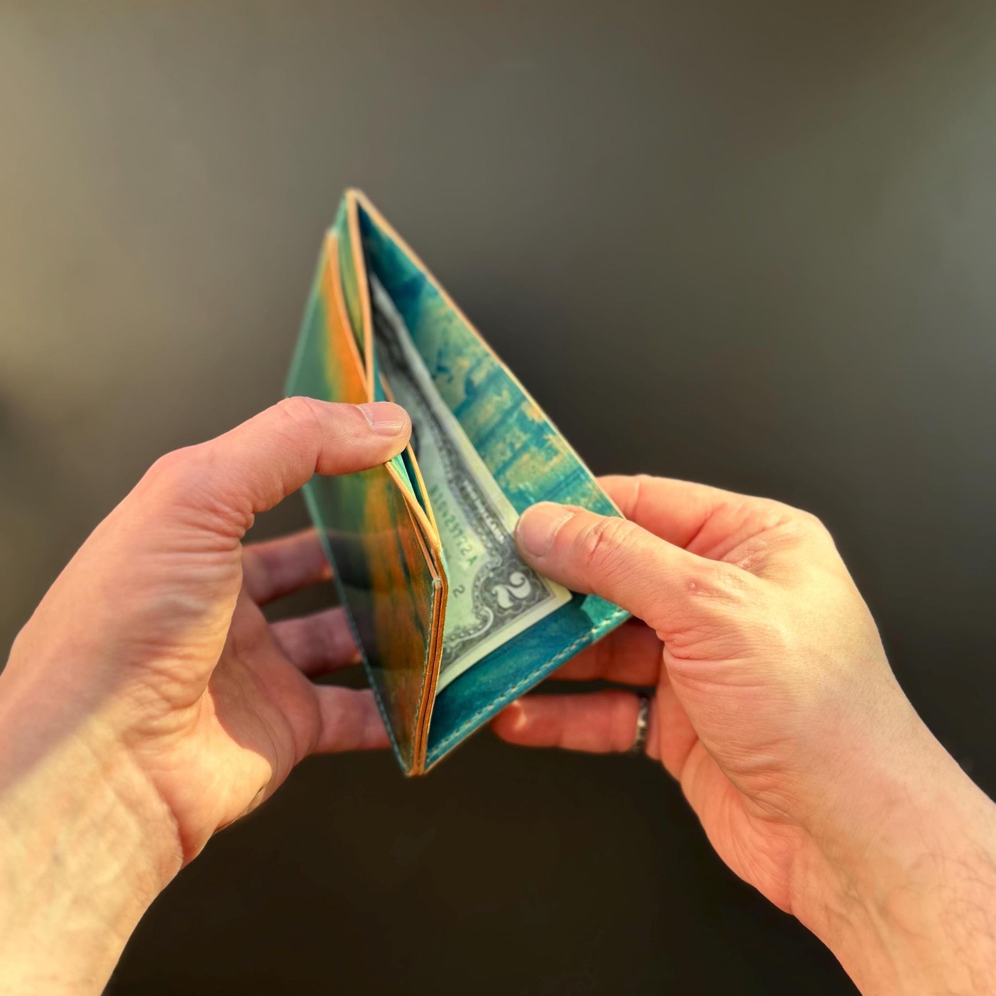 Introducing Turquoise premium slim billfold wallet crafted from exquisite Shell Cordovan leather. This wallet embodies the perfect marriage of elegance and functionality.