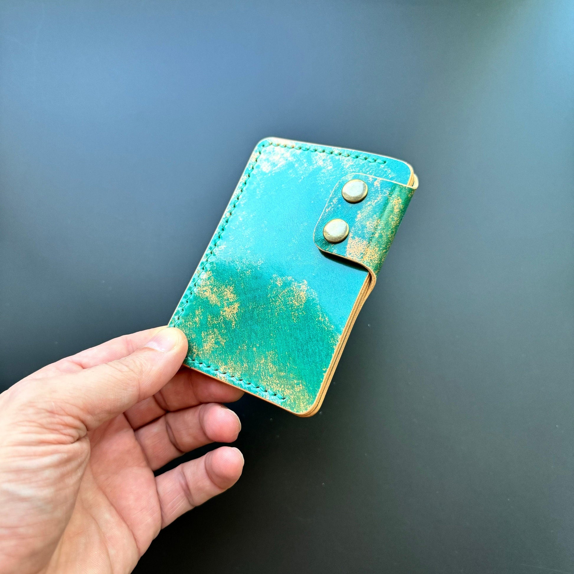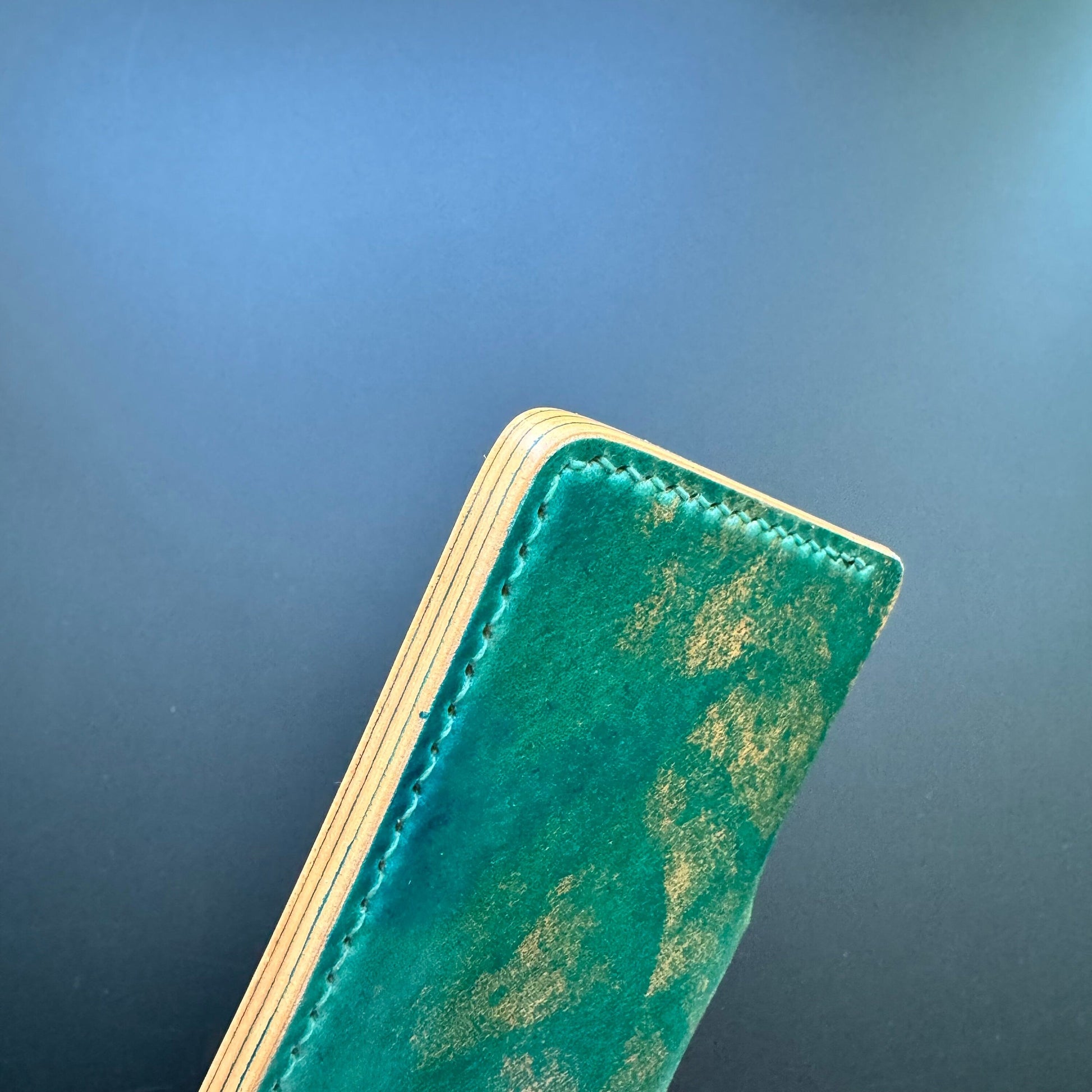 Made by hand from Rocado marbled turquoise Shell Cordovan!
