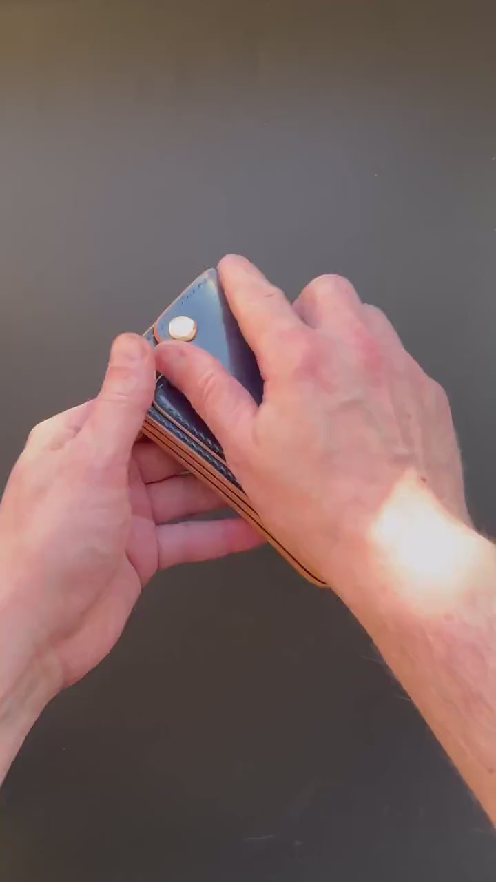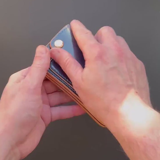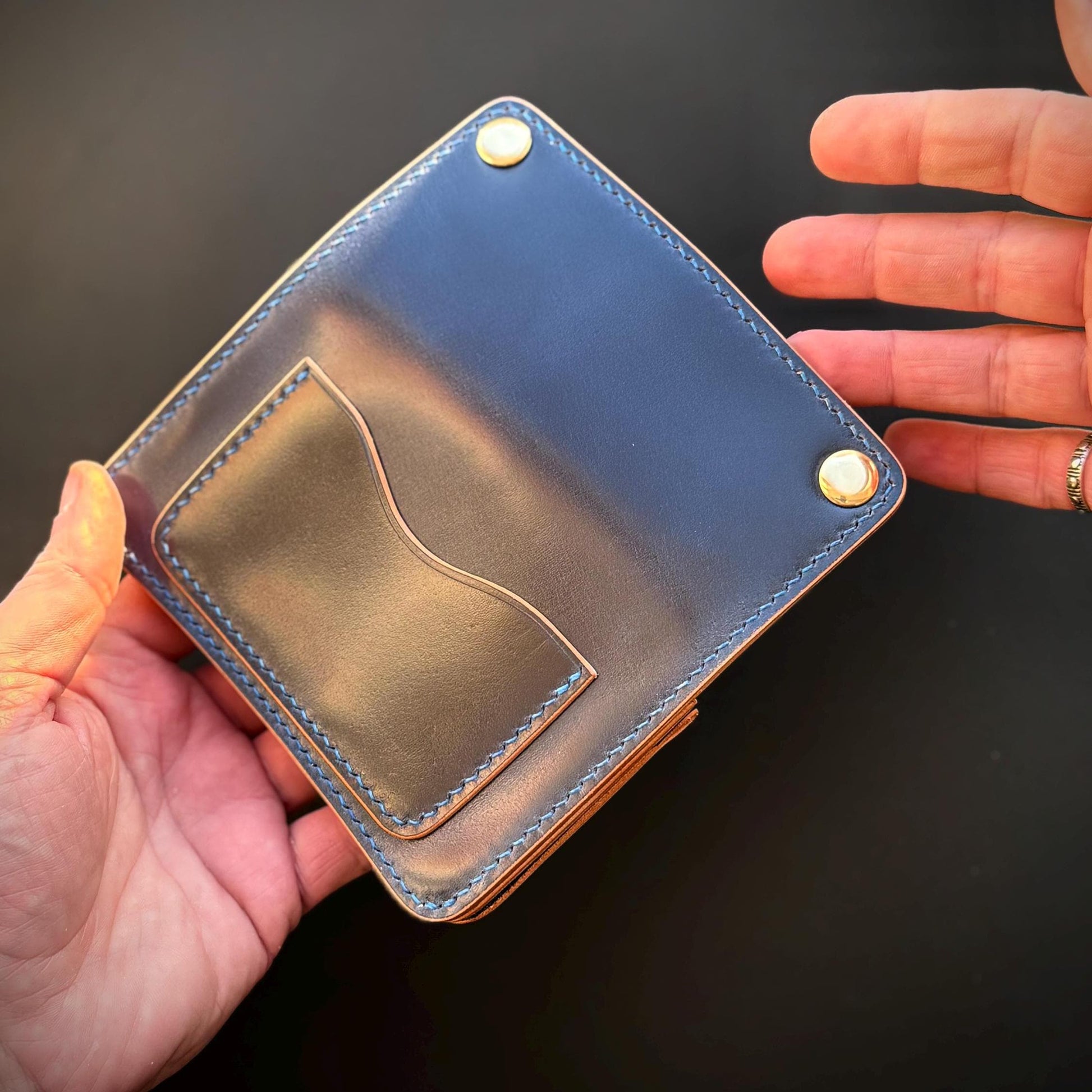 In this wallet, I used classic blue Shell Cordovan with blue thread.