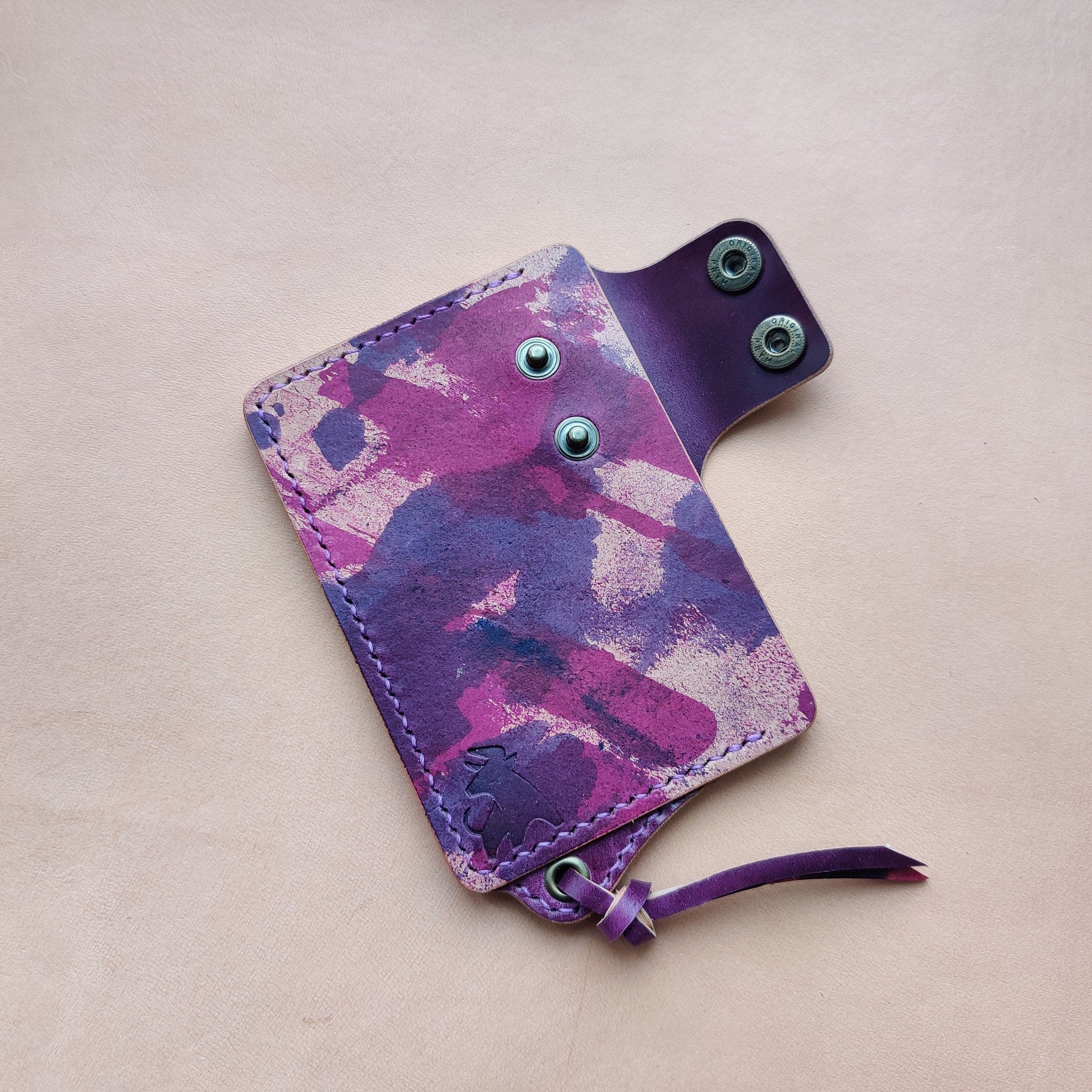 Rocado Shell Cordovan Reverse Leather Card Holder With A Ring For Chain Or Lanyard, Pocket Mini Wallet, Minimalist Card Holder Case