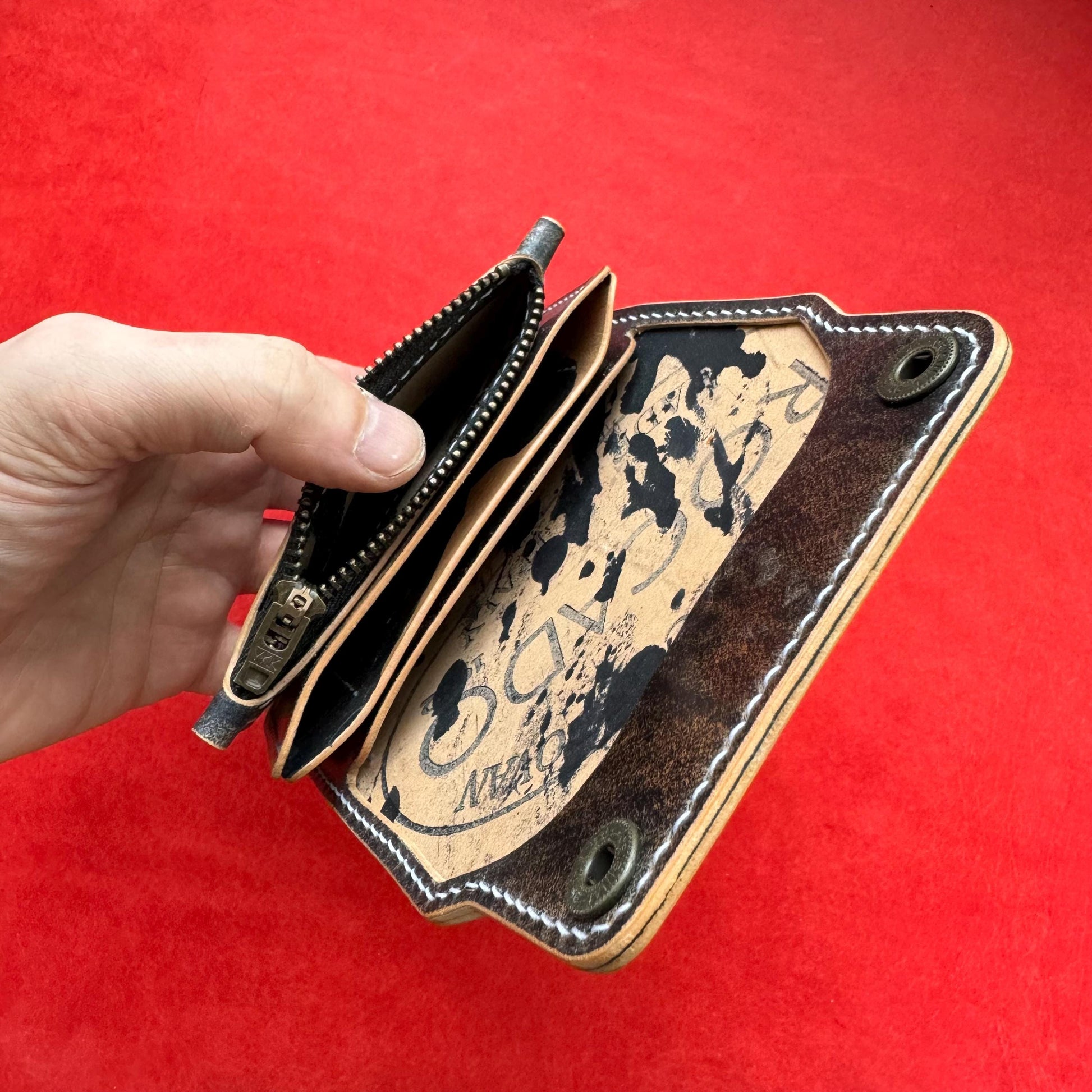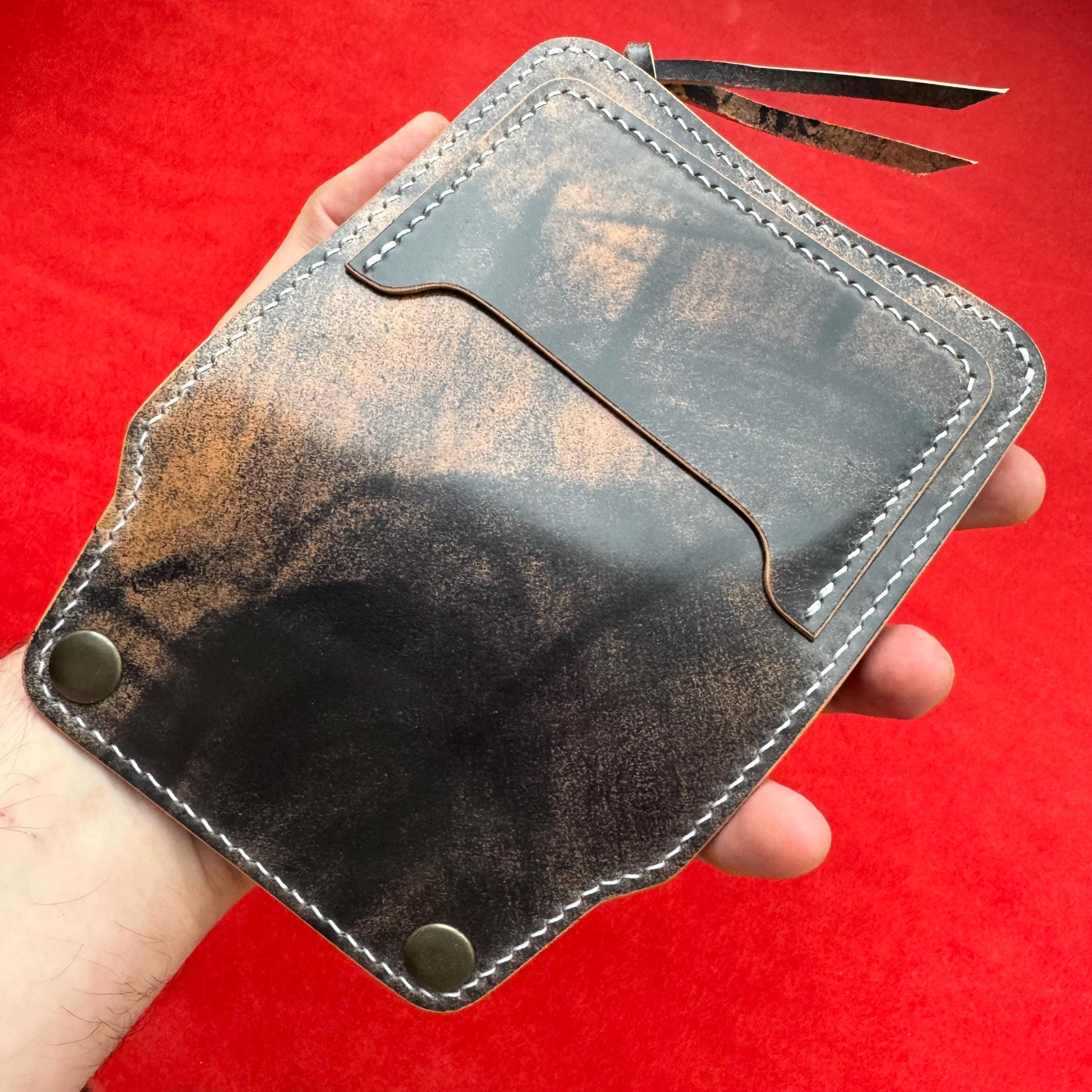 Each wallet is burnished,waxed, and stamped with my signature maker's mark by hand.
