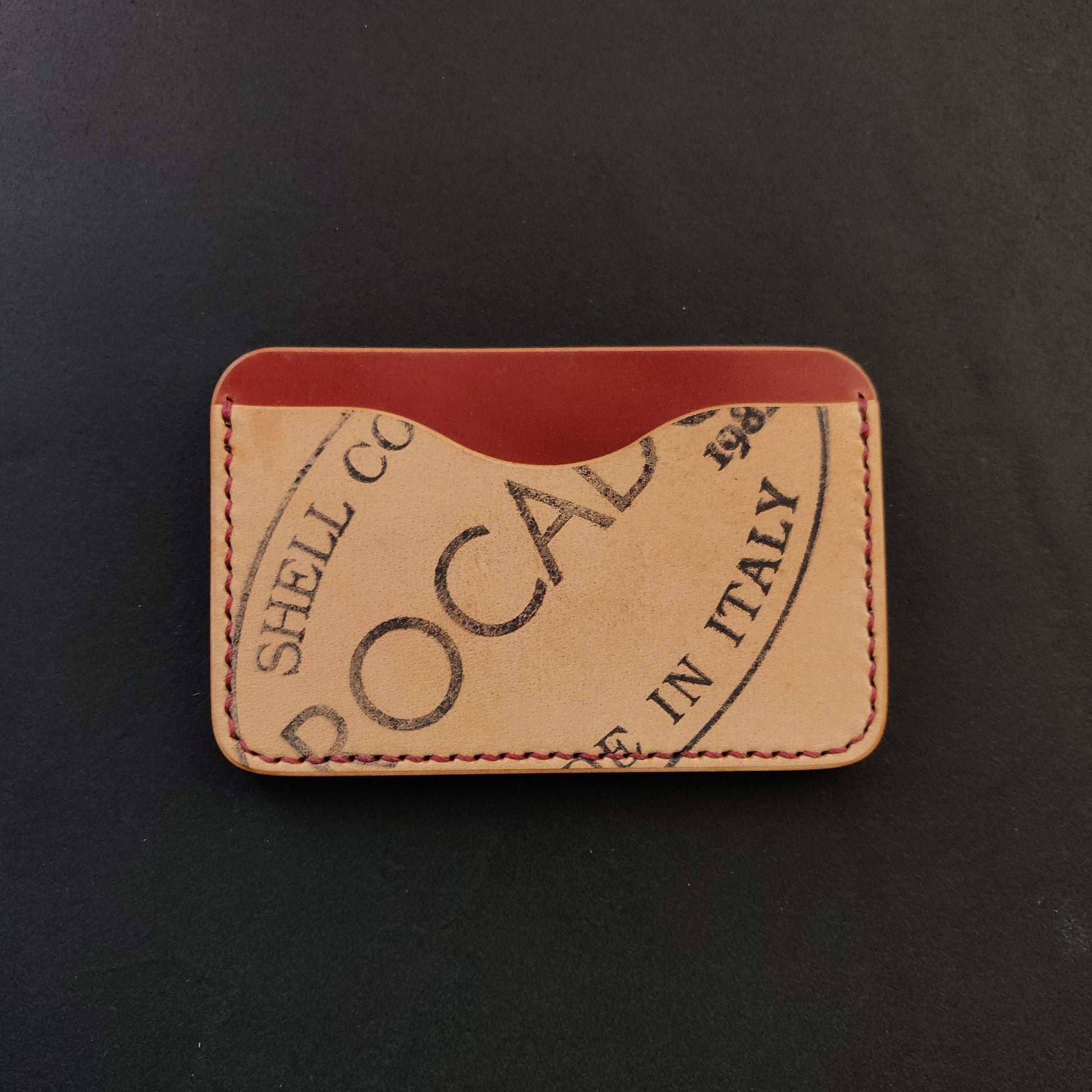 This horizontal leather card wallet is made from cordovan leather, which is a type of leather made from horsehide. It features three separate compartments to help you organize your cash, cards, and other small items. The cordovan leather is known for its durability, making this wallet a long-lasting choice. The wallet's shell cordovan leather is also characterized by its unique glossy and smooth finish that improves with age, giving it an even more distinguished and polished look over time. This shell cordovan wallet is an excellent option for anyone looking for a stylish and practical accessory that can stand the test of time.