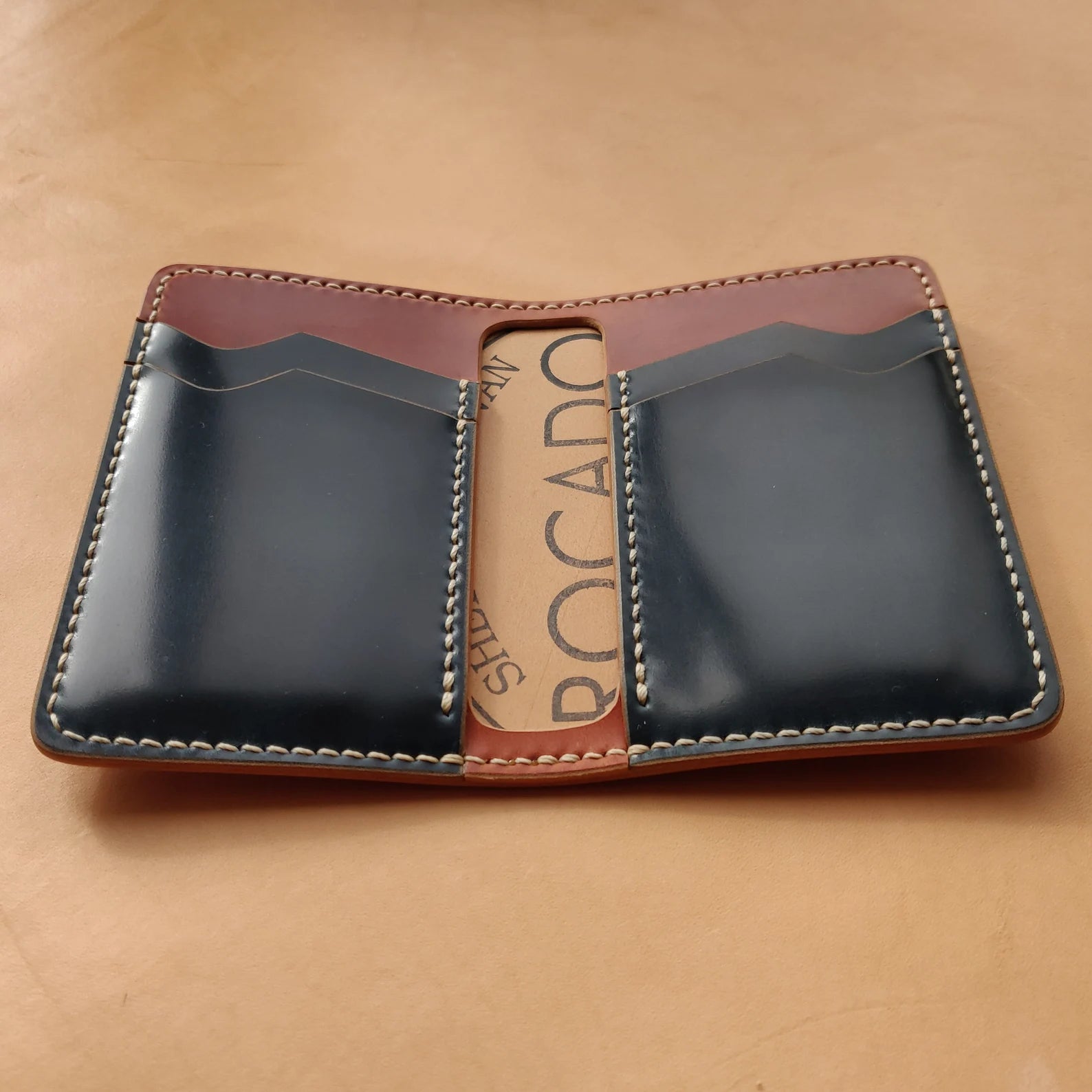Shell Cordovan Wallet, Vertical Leather Bifold Wallet, Minimalist Slim Luxury Wallet