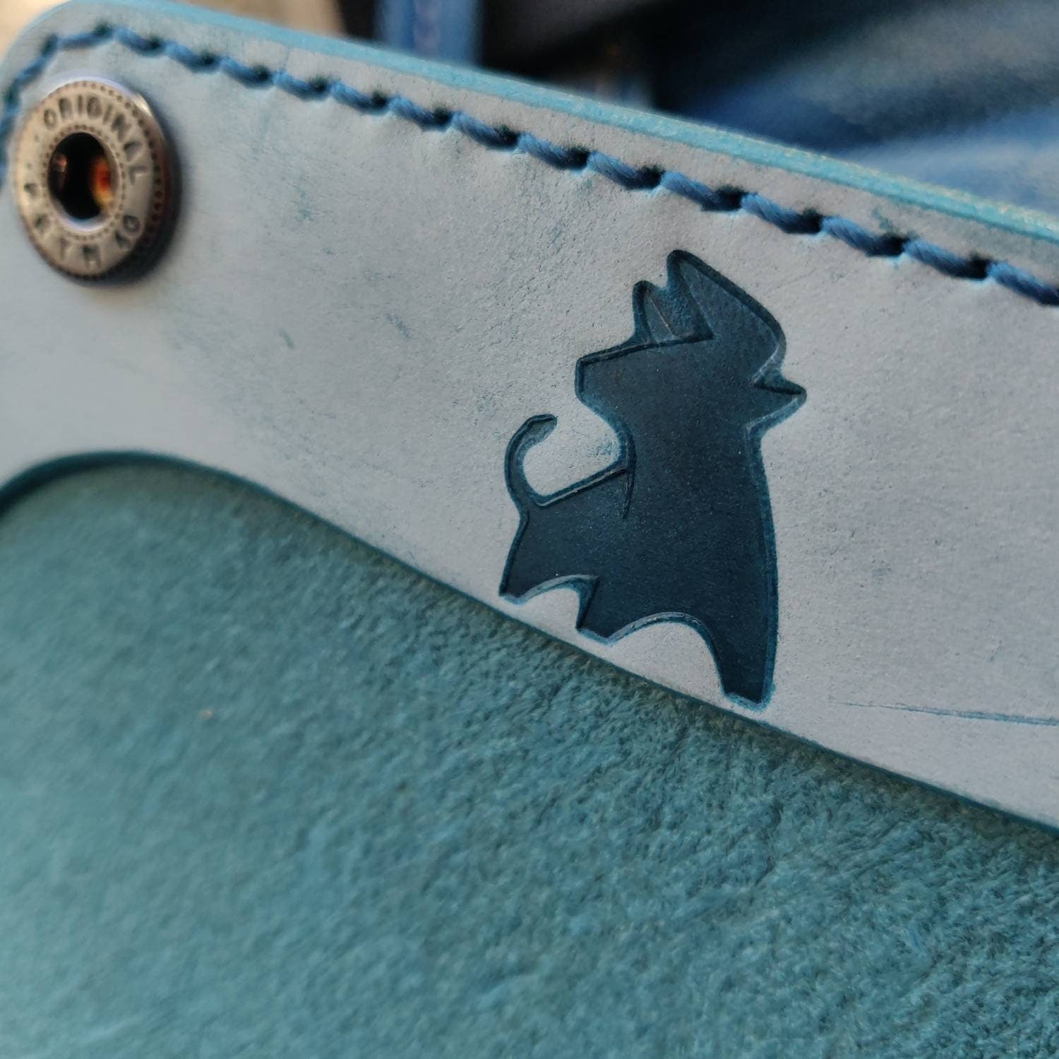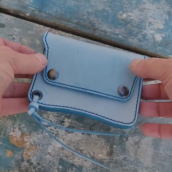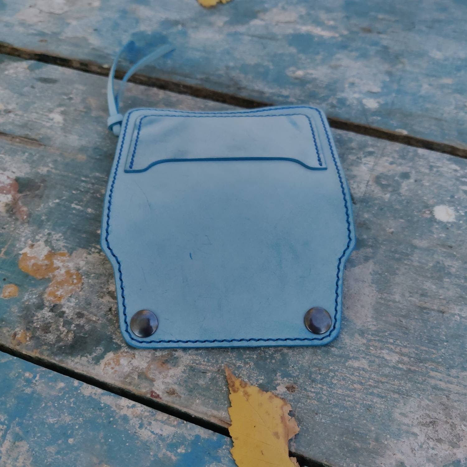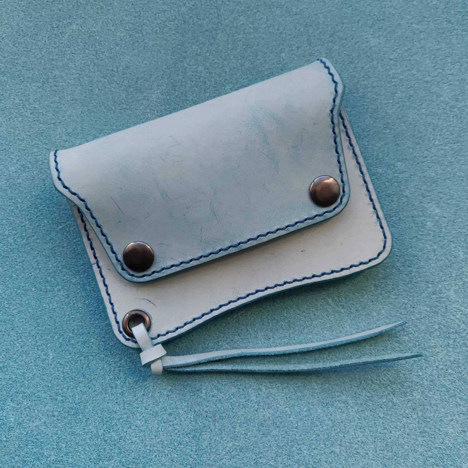 This wallet is made of premium quality blue Italian Buttero leather. The leather is completely treated with a special wax, which gives it a unique appearance. The 1.4mm leather is very dense and firm, so your wallet will be with you for a long time.