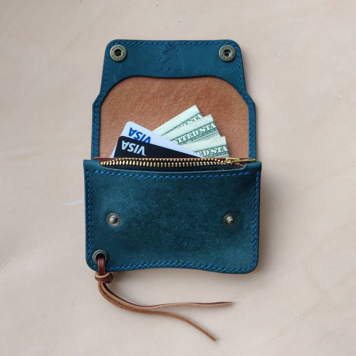 This wallet is handmade by me from two types of premium vegetable-tanned leather Pueblo and Buttero, made in the best factories in Italy.