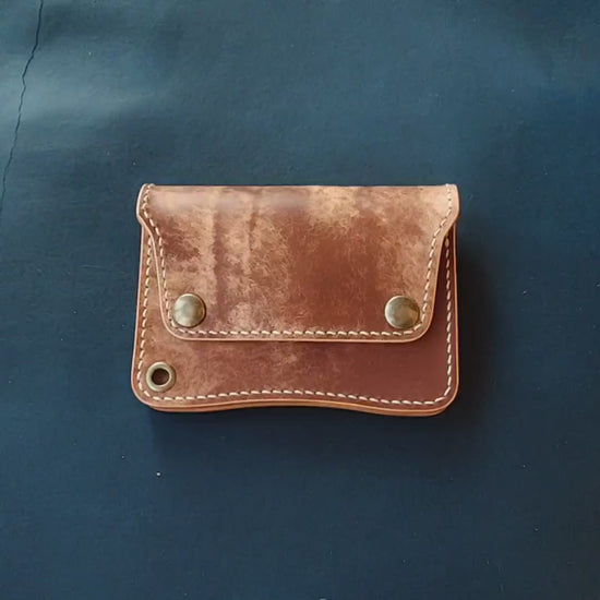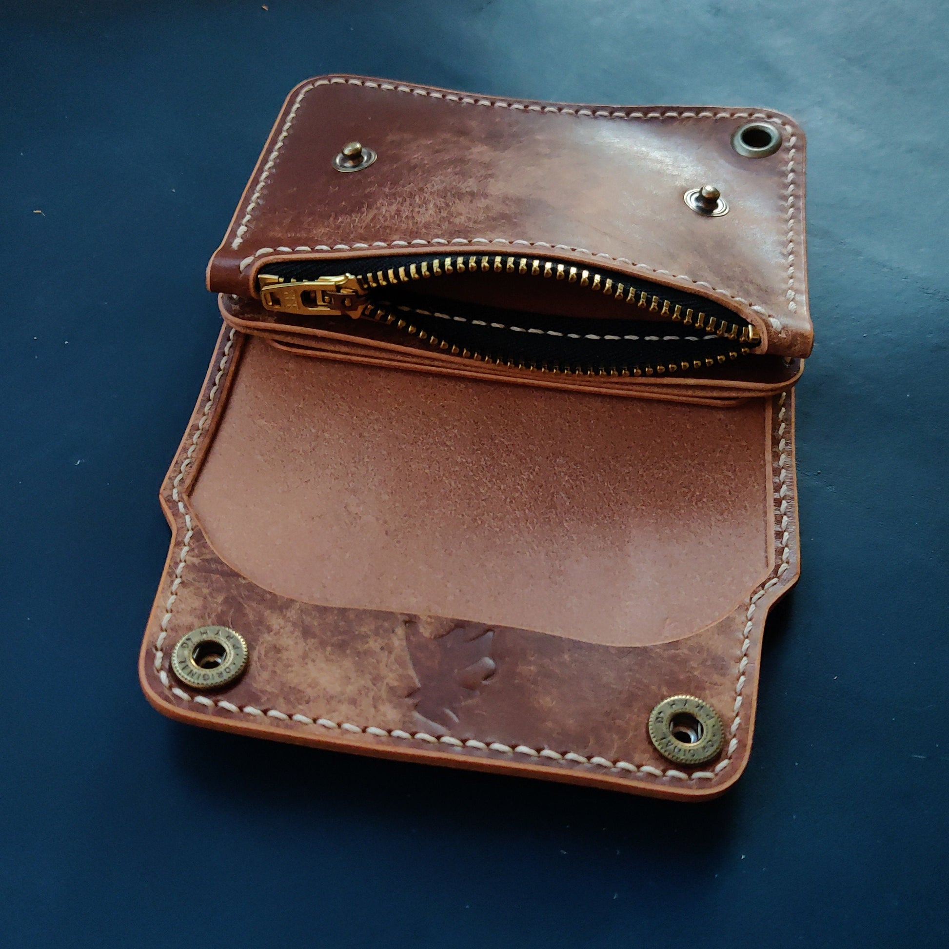 Short Trucker Wallet With A Ring For Chain Or Lanyard, Veg Tan Wallet, Stylish Wallet For Rider, Biker or Trucker