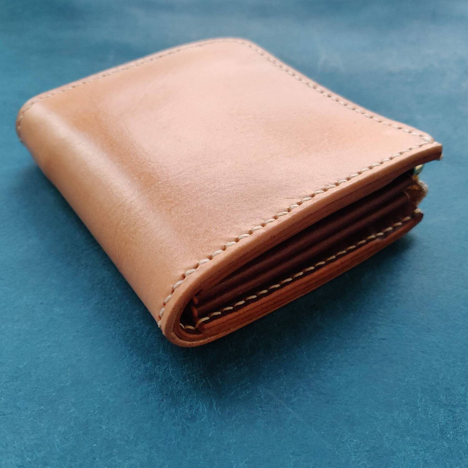 The wallet is made by hand from start to finish. It is cut out by hand, processed by hand and stitched by hand as well.