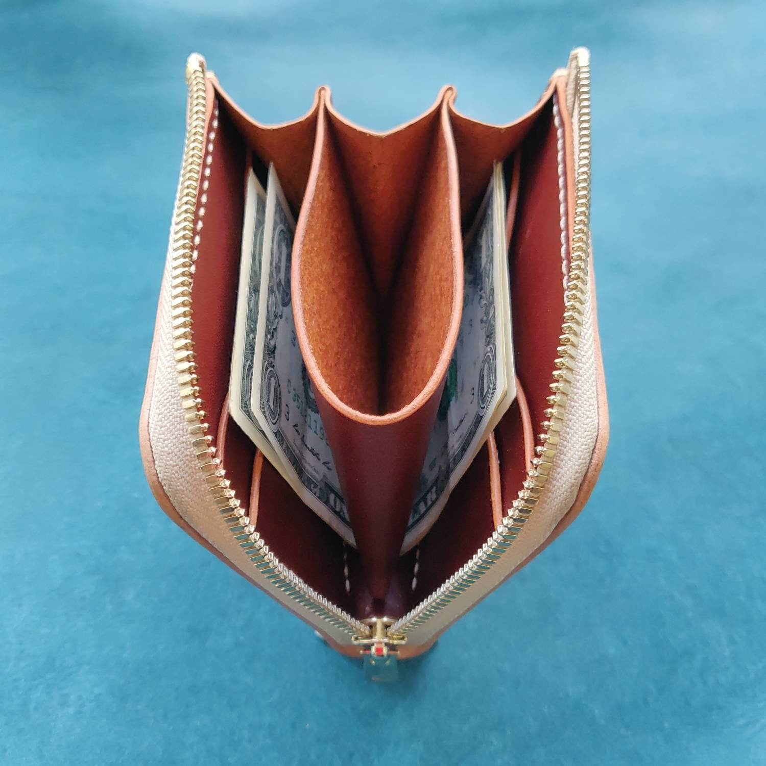 Small Zipper Wallet, Veg Tanned Zippered Wallet With Coin Purse, Buttero Leather Compact Wallet