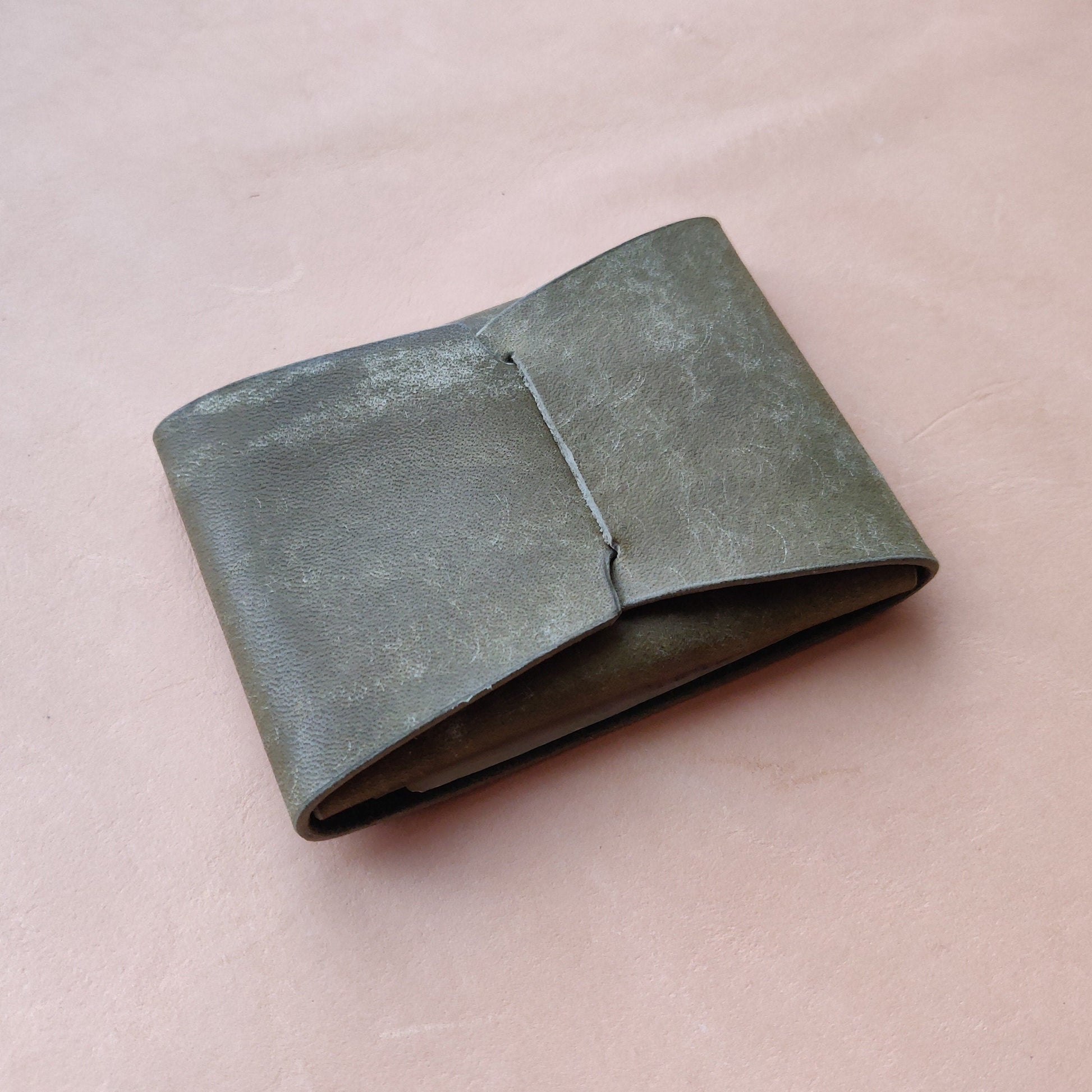 Let me introduce you to the stichless leather card wallet. It is made by my hands from green genuine Italian leather Pueblo. This leather is vegetable tanned, and therefore, over time, this wallet will show a characteristic unique patina effect.