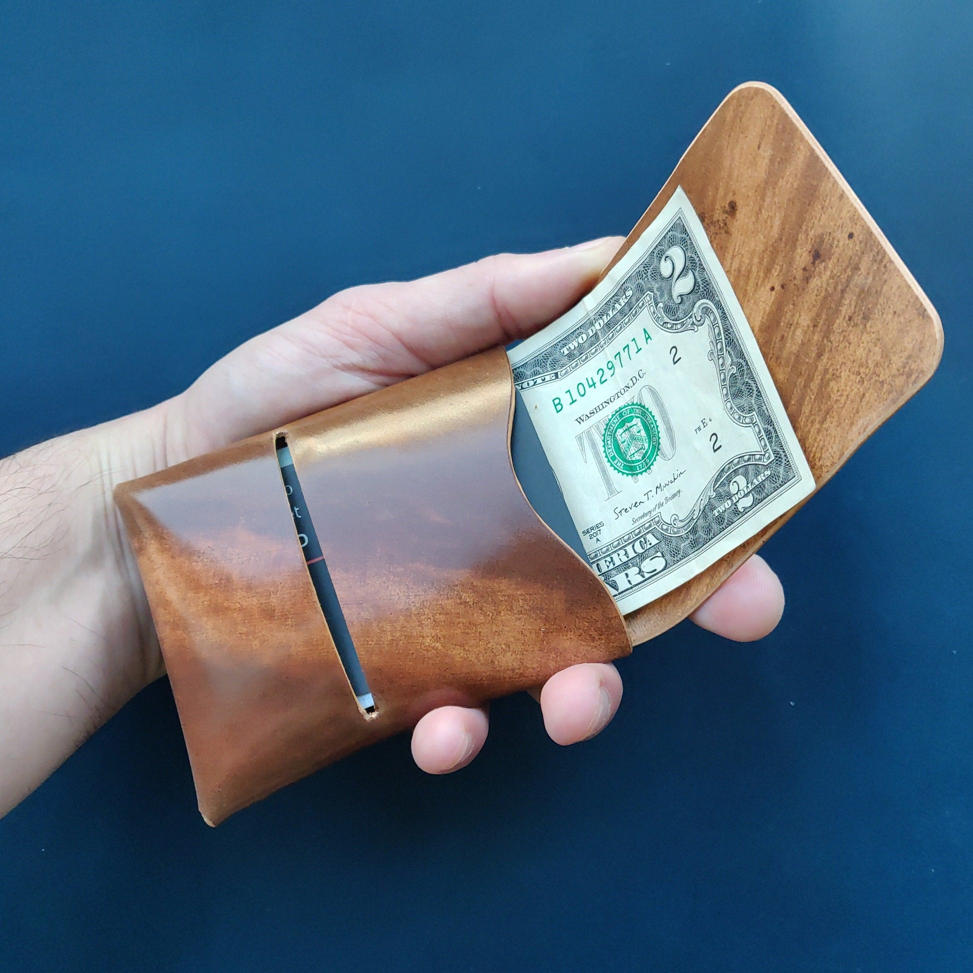 Stitchless Shell Cordovan Leather Cards Wallet, Origami Minimalist Wallet, EDC Card Holder Case
