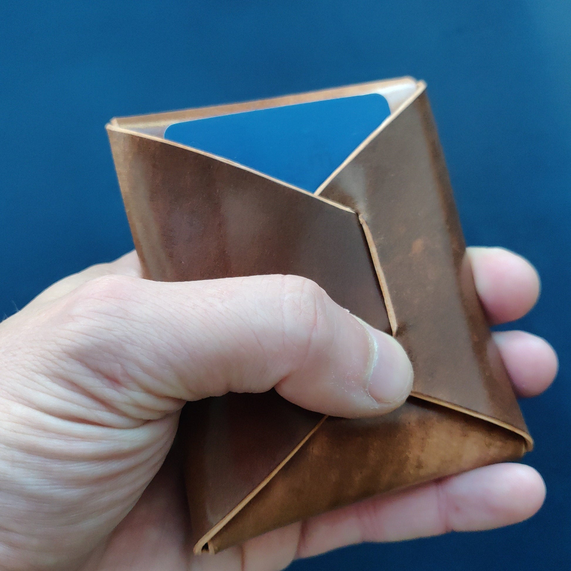 A stitchless leather cards wallet made of shell cordovan is a luxurious accessory that exudes quality and style. The origami ninimalist wallet is crafted from a single piece of leather, without any stitching or seams, giving it a sleek and streamlined appearance.